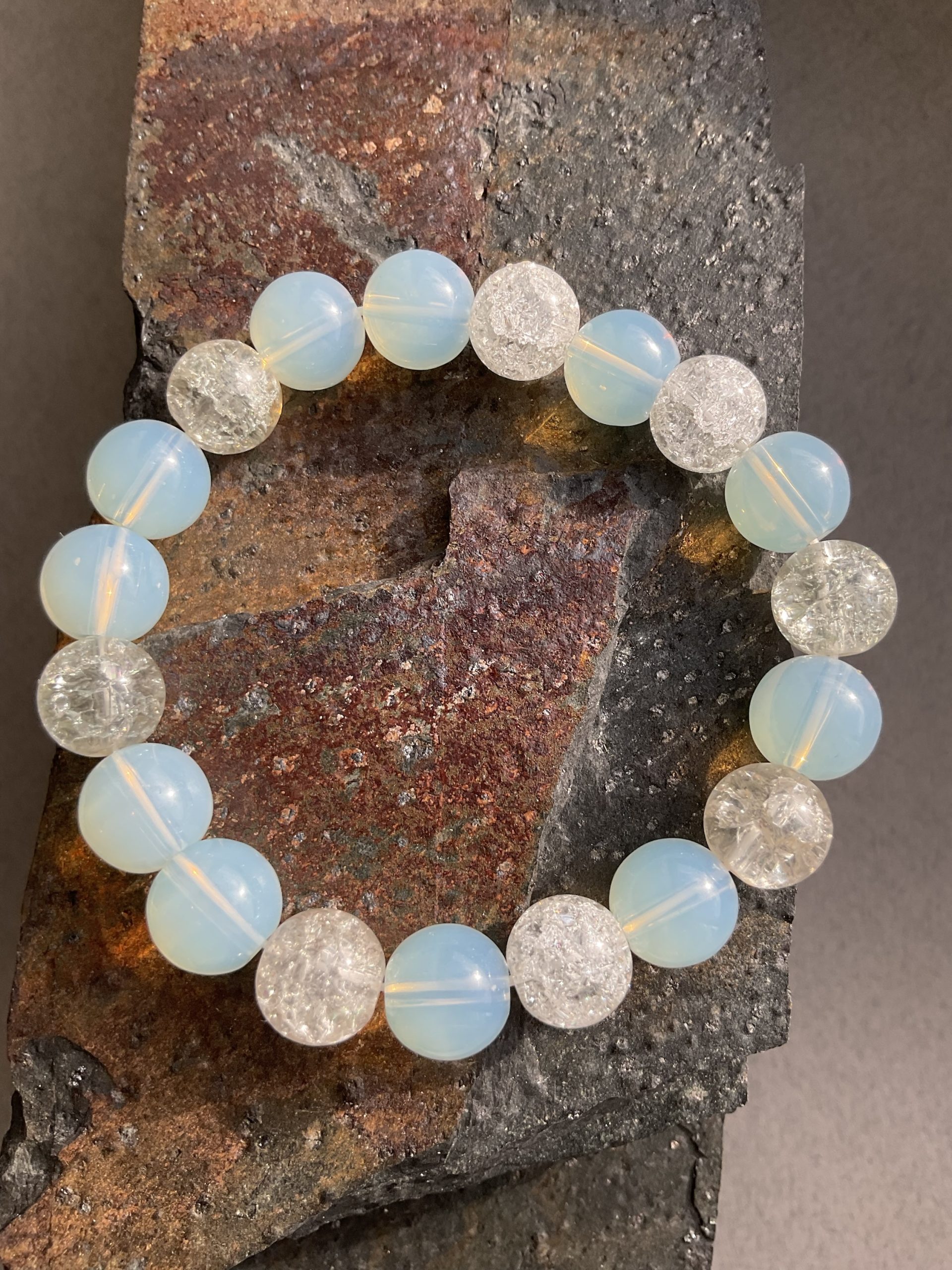 Браслет Опалове Скло, форма кругла ,гладка . Розмір намистини 10мм, розмір 16см обхвату. Ціна за шт.