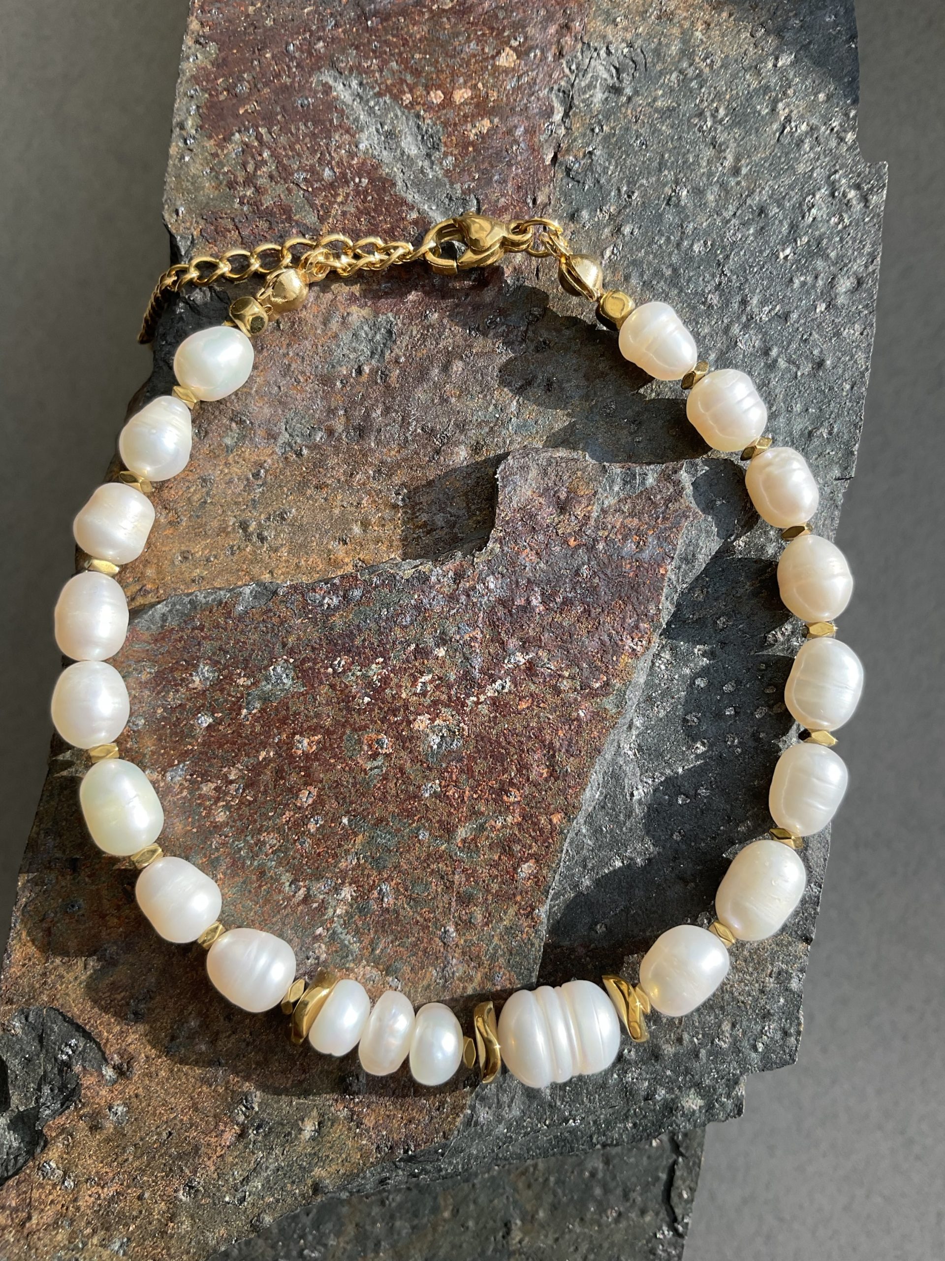 Браслет Перли, форма овал з вставкою намистин гематиту. Розмір намистини 4-10мм, розмір від 15см+4см обхвату. Ціна за шт.