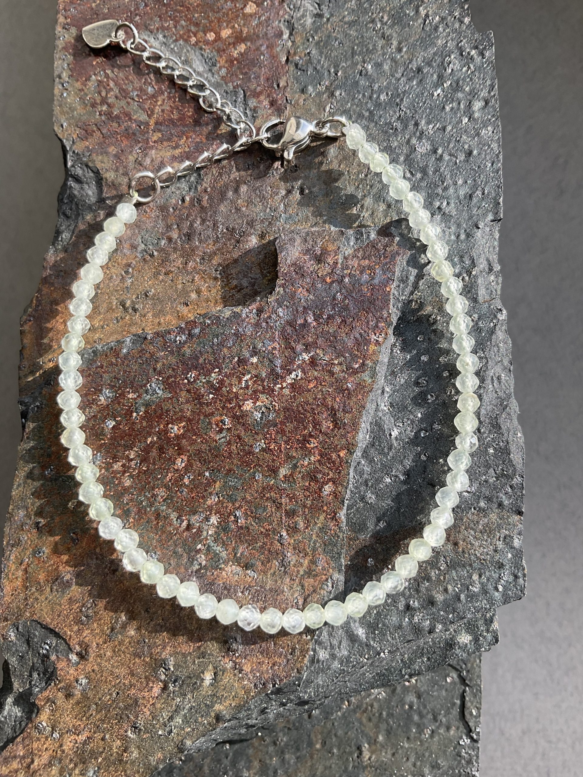 Браслет Пренит, форма круглі граньовані. Розмір намистини 3мм, розмір 16см обхвату. Ціна за шт.
