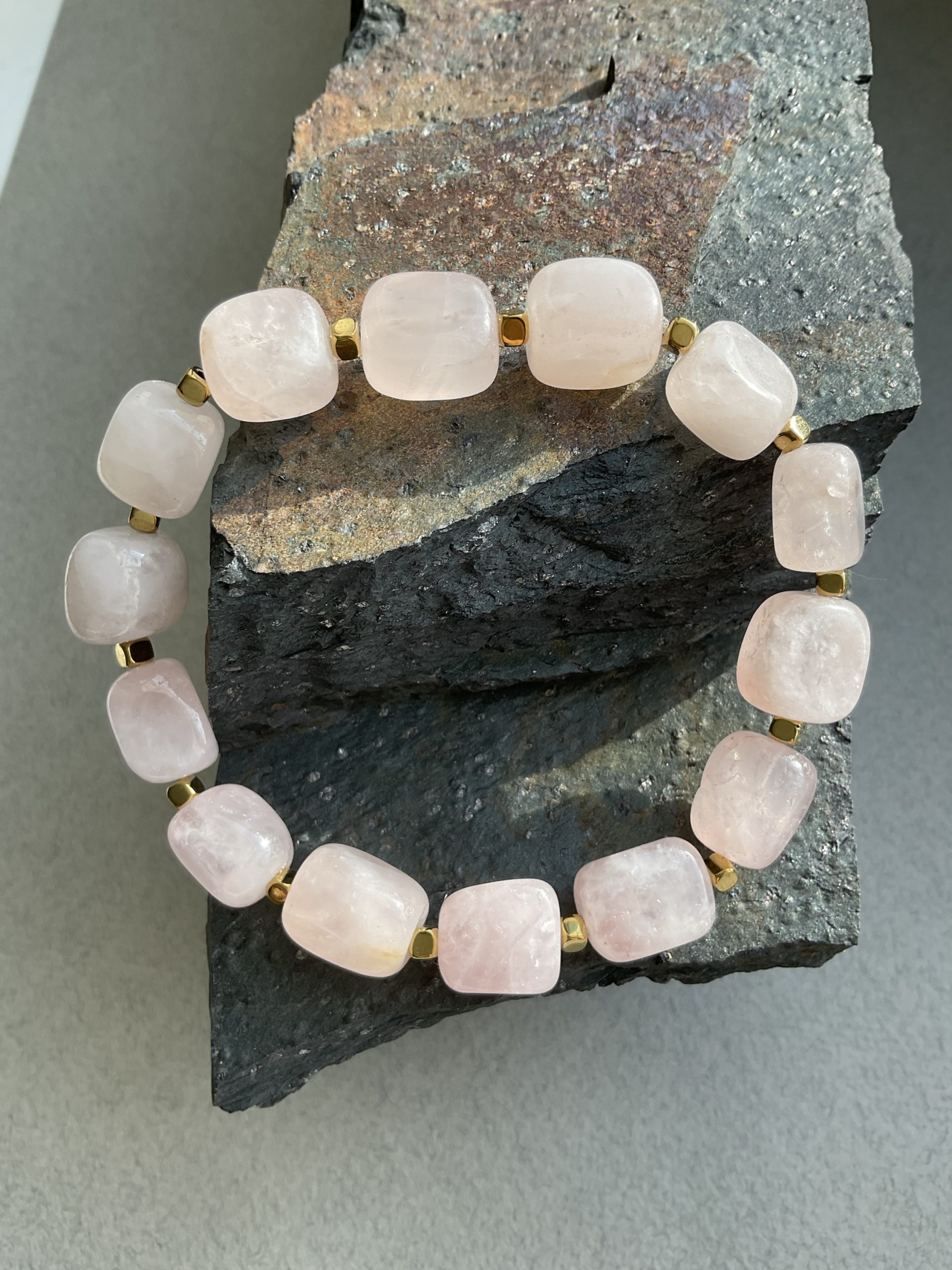 Браслет Розовий Кварц, форма прямокутник, гладкий. Розмір намистини 8-12мм, розмір 17см обхвату. Ціна за шт.