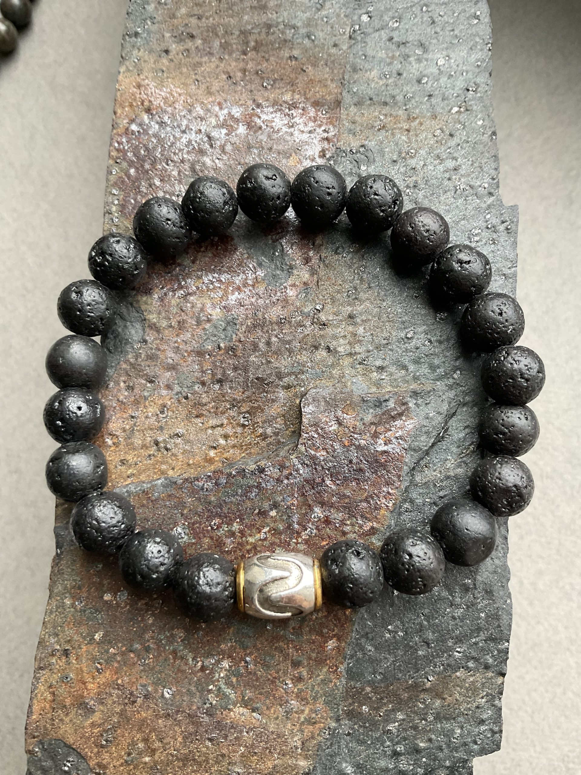 Браслет Вулканічна Лава, форма кругла. Розмір намистини 9мм, розмір 17см обхвату. Ціна за шт.