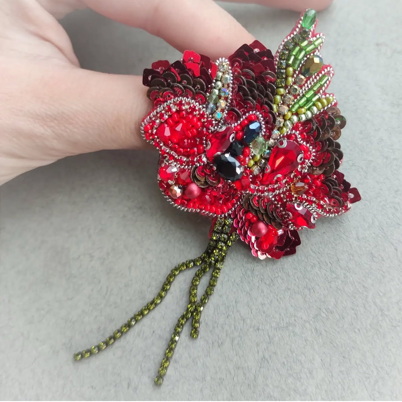 Брошка Червоний Мак, ручна вишивка, застібка з поворотним механізмом, зворот екошкіра. Ціна 480 грн кількість