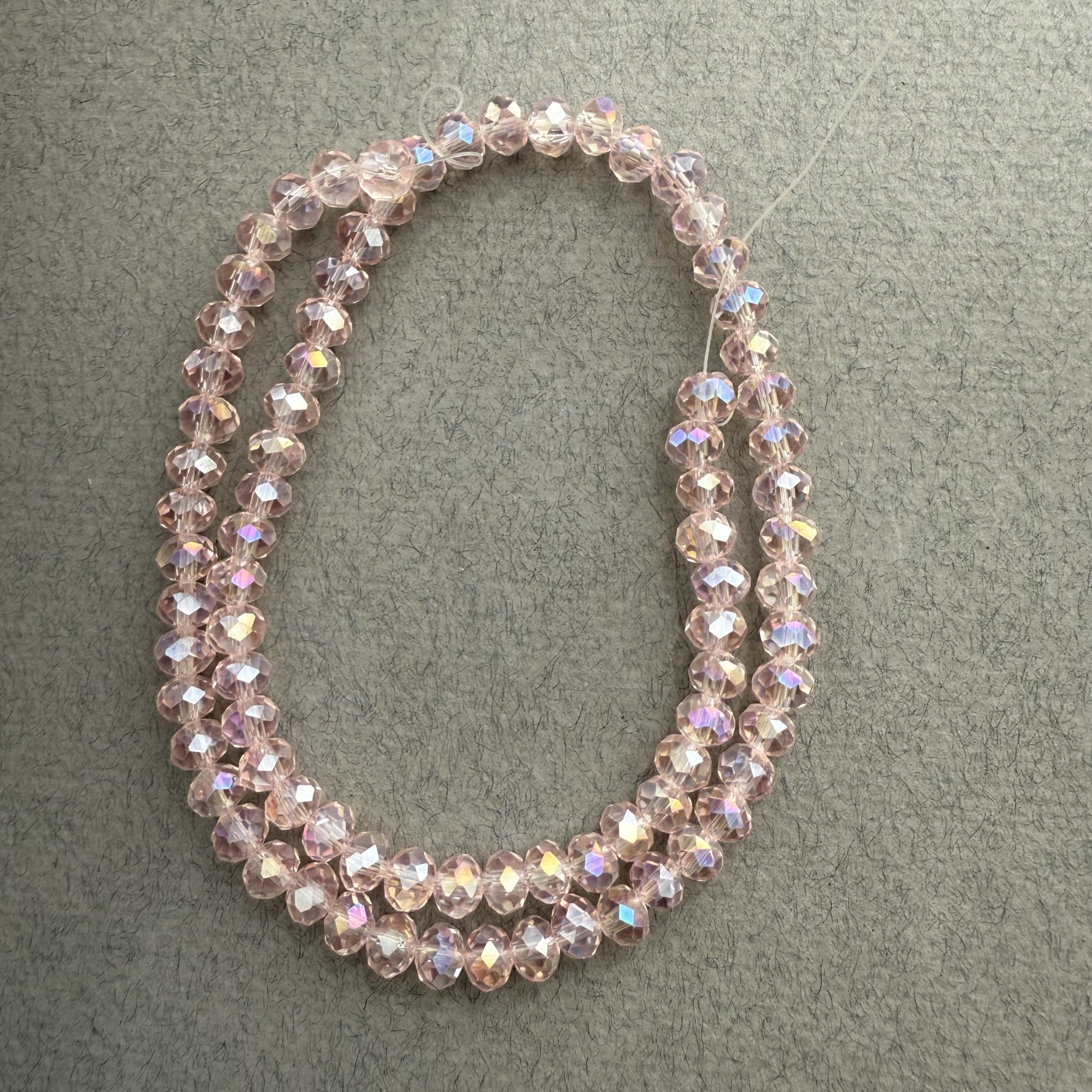 Намистини кришталеві Рондель, розмір 6*4 мм, довжина 38 см, колір рожева-прозора з переливом кількість