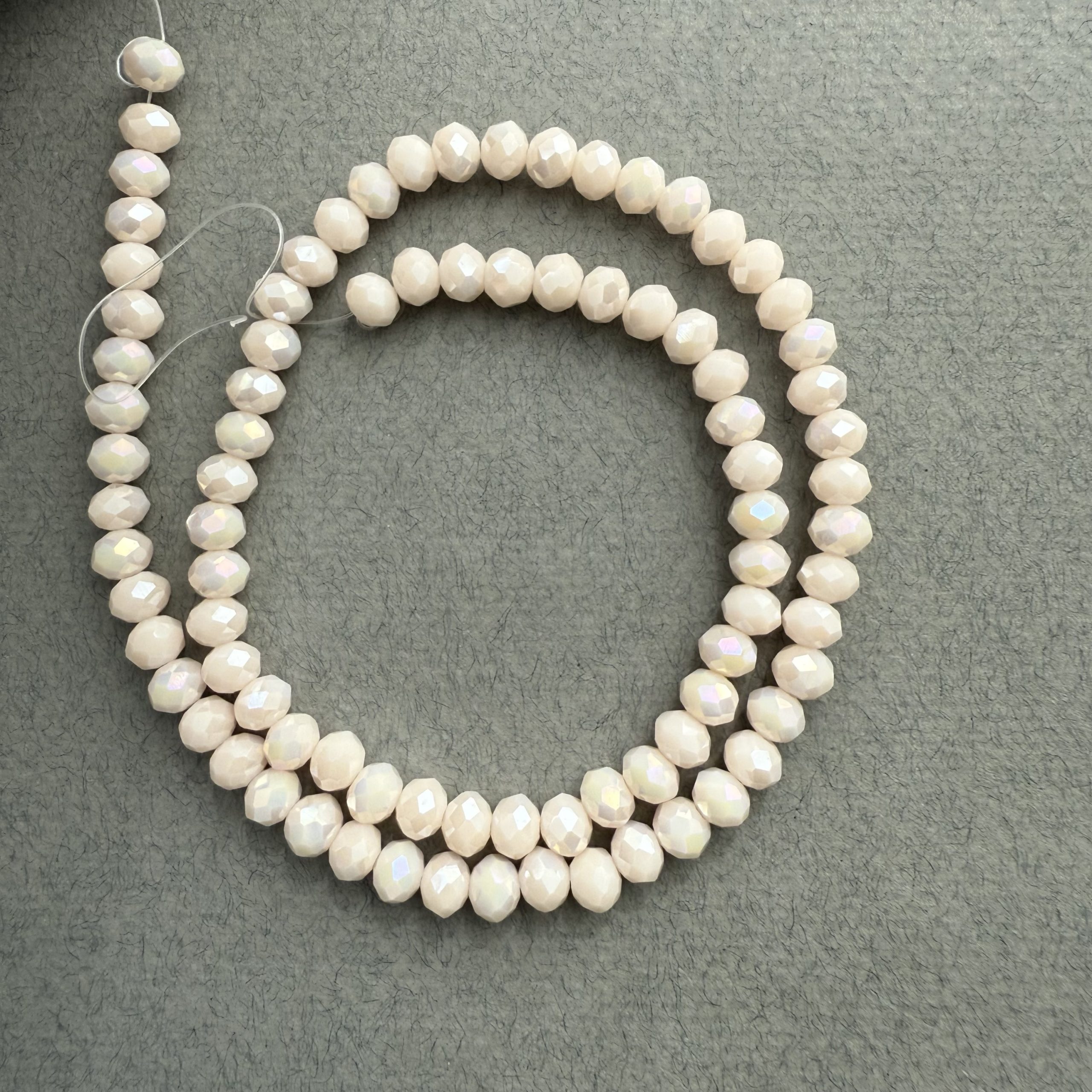 Намистини кришталеві Рондель, розмір 6*4 мм, довжина 38 см, колір молочний з переливом кількість