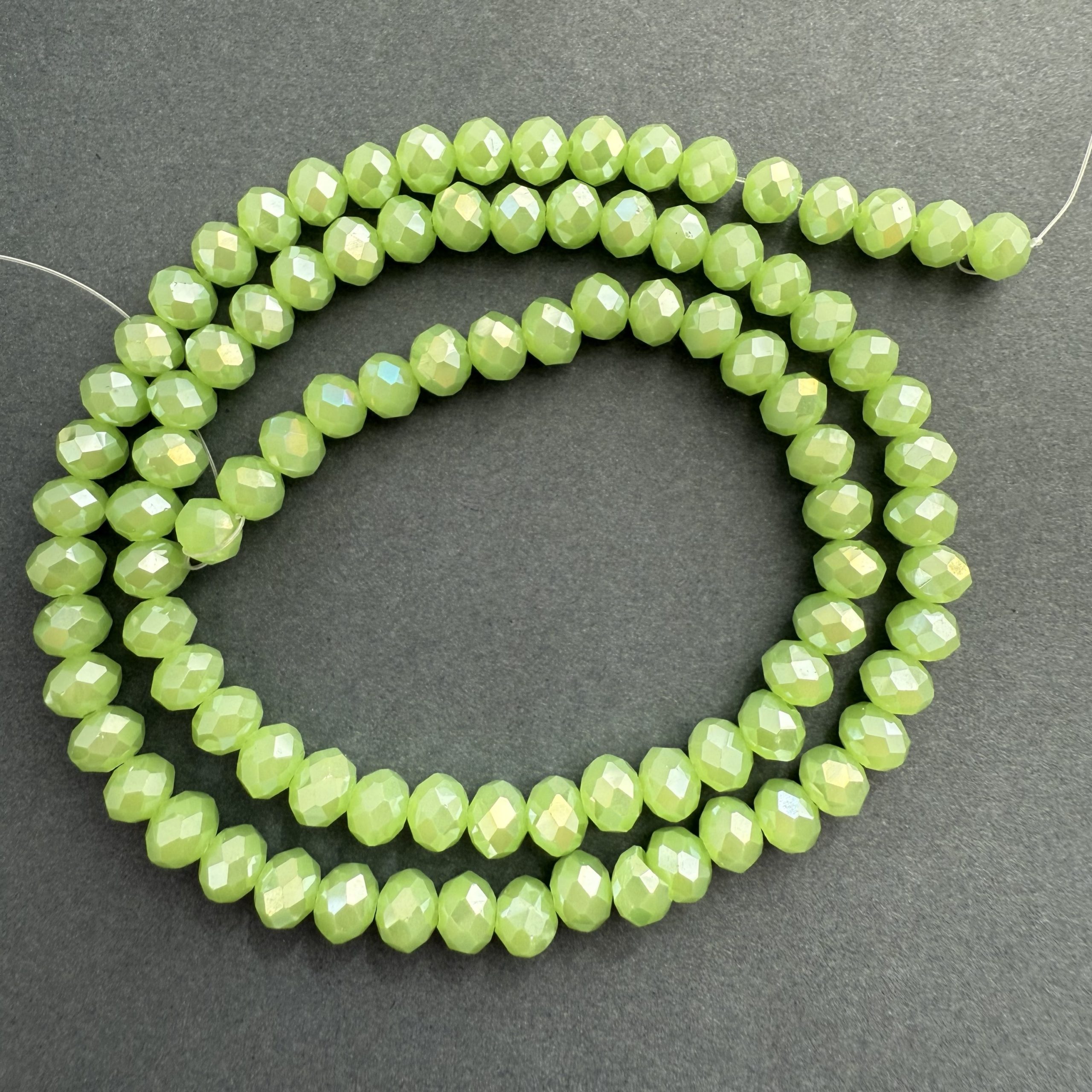 Намистини кришталеві Рондель, розмір 6*4 мм, довжина 38 см, колір салатної-молочний з переливом